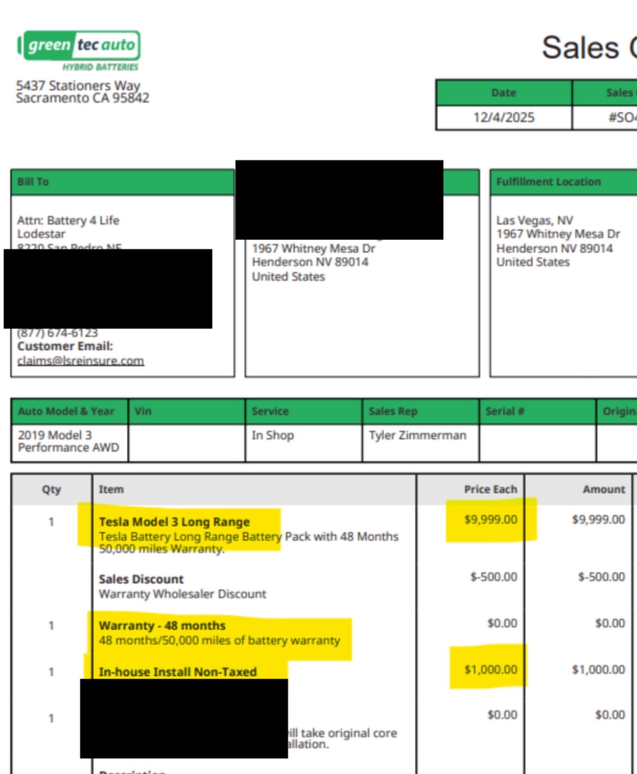 Battery4Life was created to give Tesla owners true peace of mind in the face of one of the biggest risks of EV ownership—the cost of battery failure. Once factory coverage expires, a single battery issue can result in an unexpected repair bill of $8,000 to $15,000 or more. With Battery4Life, that risk is removed. When a covered battery failure occurs, we pay the claim so our customers don’t have to delay repairs, negotiate costs, or absorb a five-figure expense. This protection isn’t theoretical—it’s proven. Below is a real receipt from a recent $10,000 Tesla battery replacement claim paid by Battery4Life, showing exactly how the coverage works when it matters most. That’s what peace of mind looks like: knowing that if the worst happens, you’re protected.